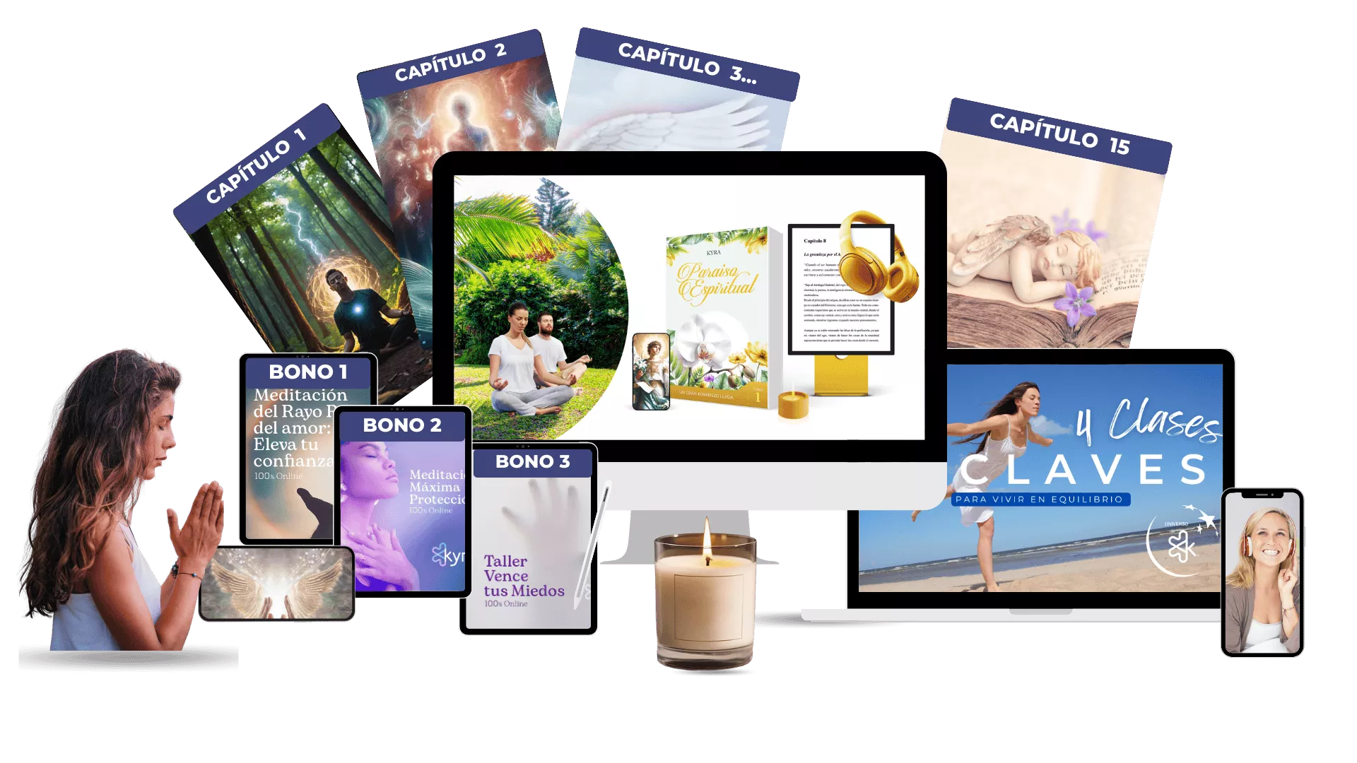 Este producto es un LIBRO ONLINE completamente práctico para que comiences tu propio desarrollo espiritual, sanes, te comprendas con cada práctica. Tiene 15 capítulos y más de 40 prácticas espirituales para tu evolución. Incluye audiolibro en español con la voz de Kyra para lograr conectarse en meditaciones sin estar leyendo + los bonos que te ayudarán a crecer más rápido espiritualmente soltando las cargas que pesan. es lo que necesitas para comenzar a liberarte y empezar a construir una vida nueva.